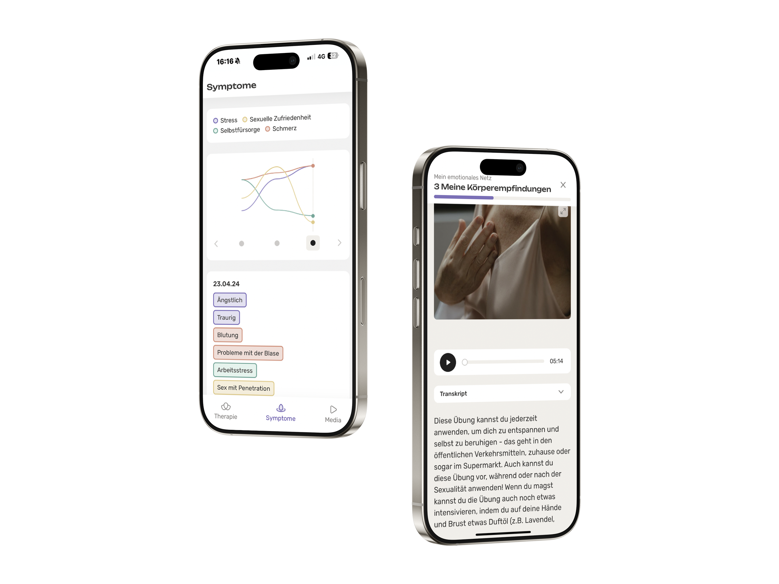 Es erwarten dich 8 Sitzungen, die ca. 1 Stunde dauern und eine Hausaufgabe (ca. 15-60 Minuten). Du kannst die Intervention selbstständig und bequem von zuhause aus durchführen. Wir empfehlen eine Sitzung pro Woche durchzuführen, so würdest du die Inhalte in 8 Wochen durchlaufen. Maximal hast du 12 Wochen Zeit. Die Inhalte beschäftigen sich mit den Themen Schmerzen beim Sex, Anatomie, sexuelle Bedürfnisse und Grenzen, Kommunikation sowie Gefühle und Gedanken beim Sex.